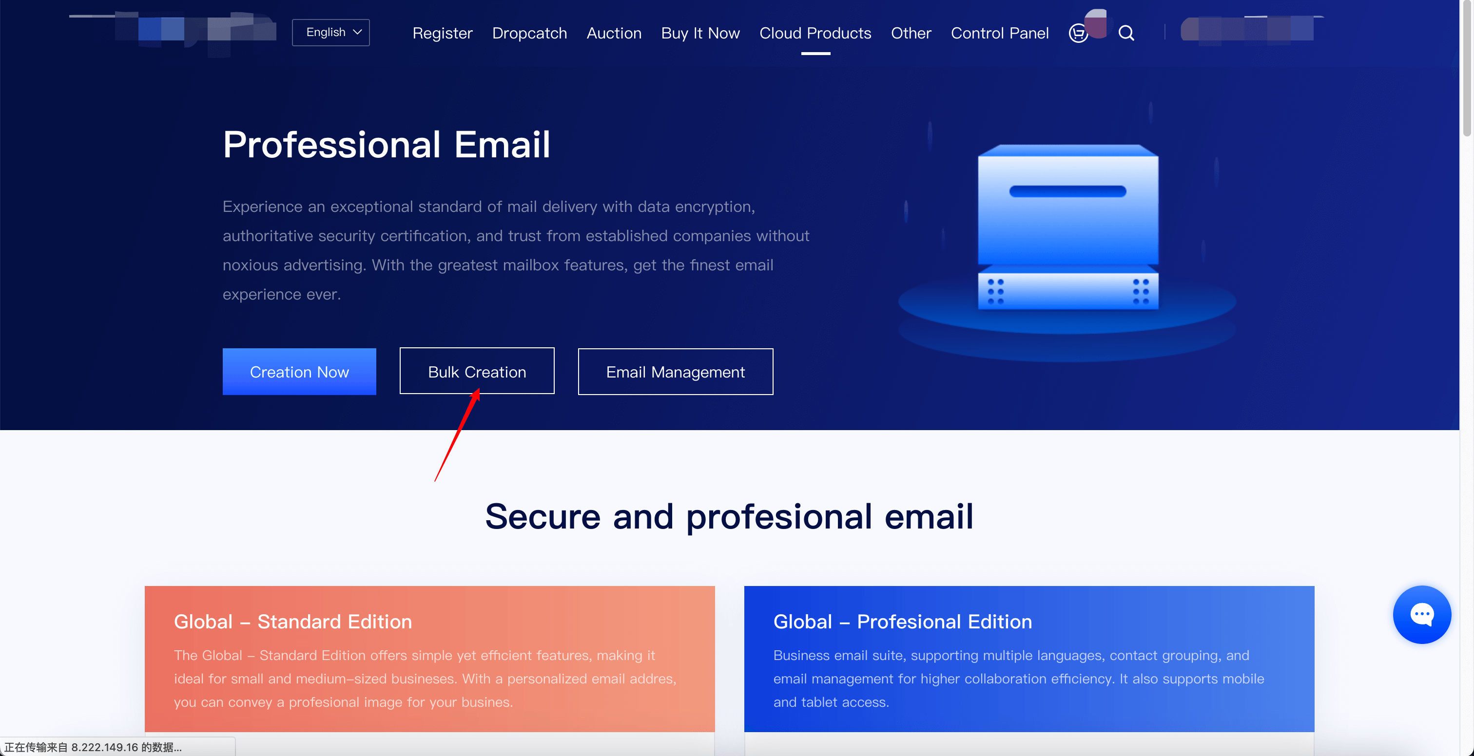 1. Log in to our official website, click on "Professional Email" under the Cloud Products section to enter the dedicated page.