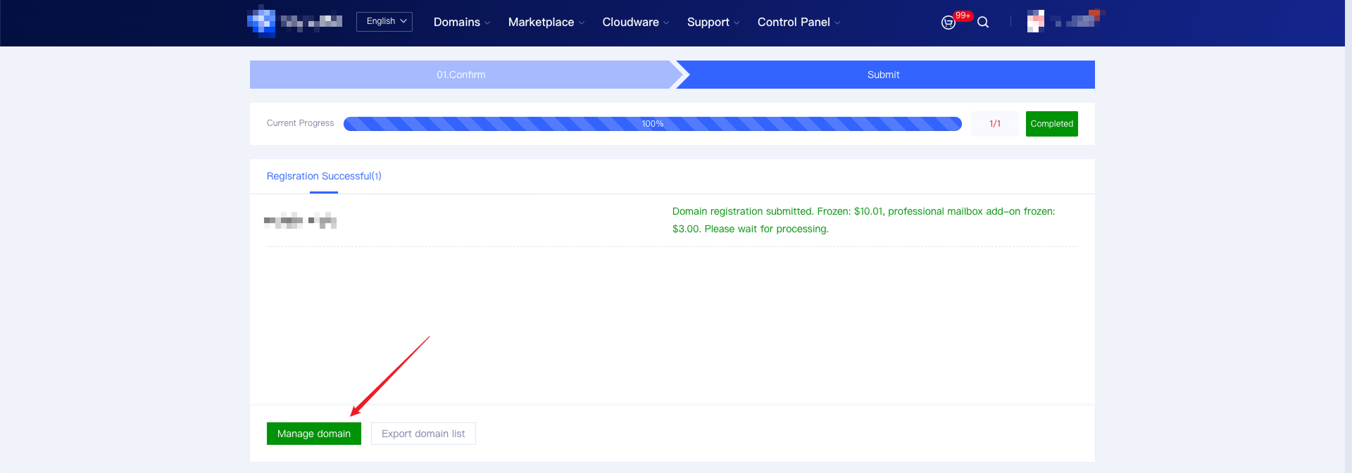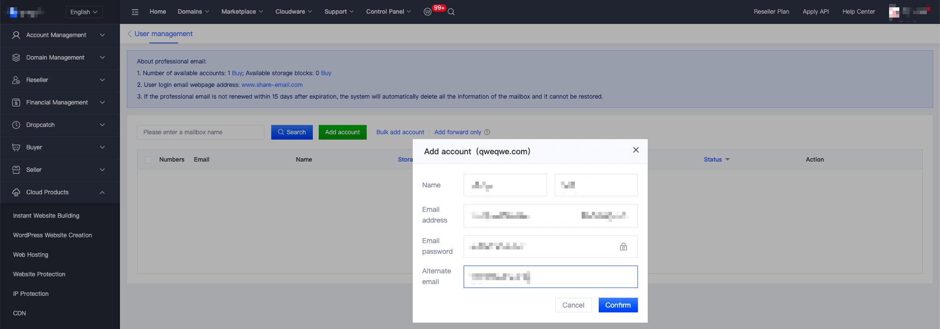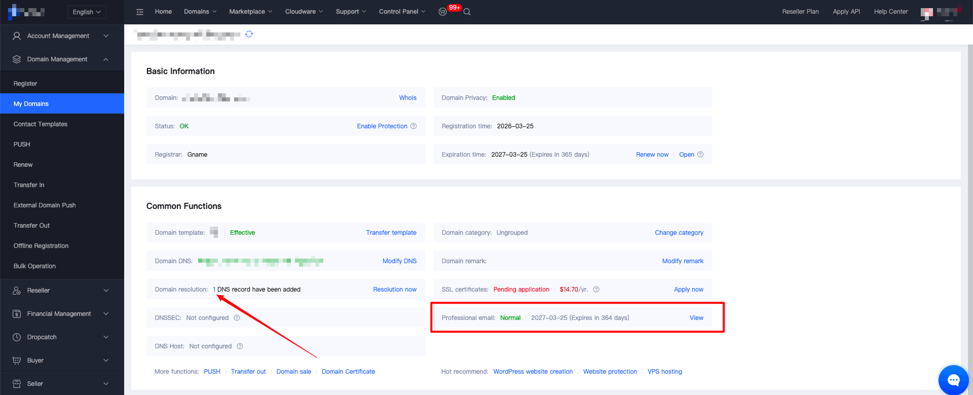 3. After successful domain registration, the system will automatically activate the corporate email and configure DNS resolution, which typically takes 1-3 minutes to take effect. (The DNS resolution records must be retained during the email usage period; otherwise, the email will not function properly.)