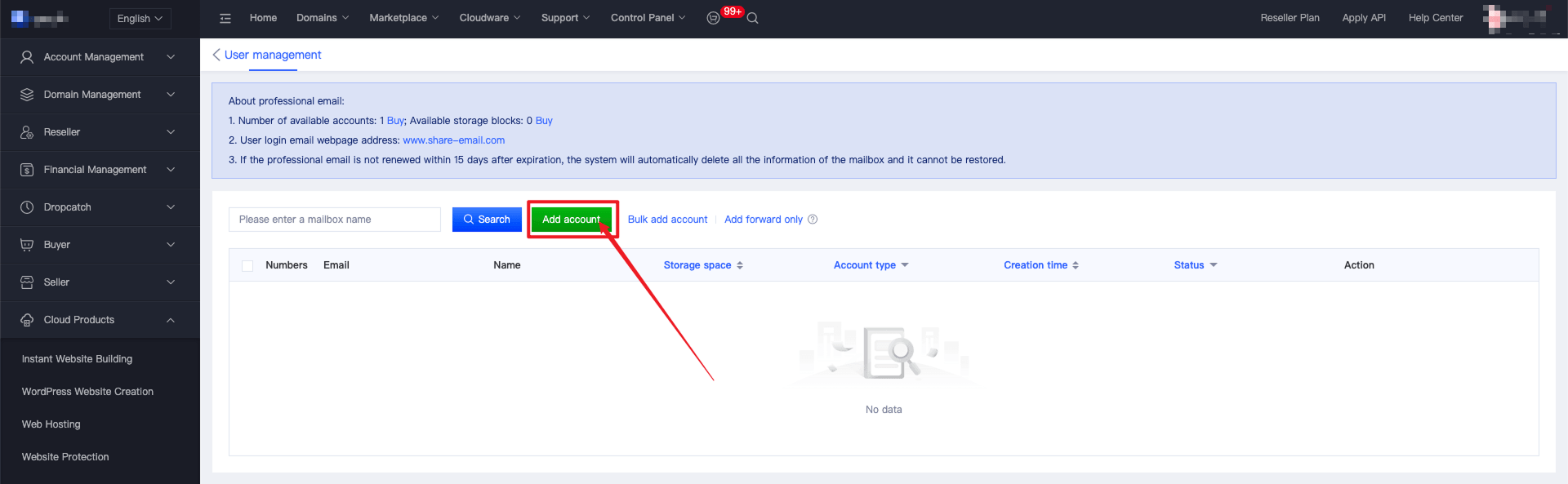 4. Enter the email management page, add email accounts, and then you can log in and use them.