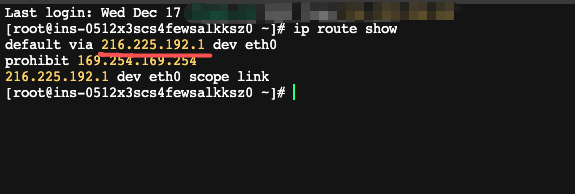 1、 Log in to the server using the primary IP (GMSSH is recommended), then run the command ip route show.