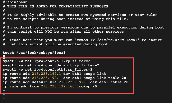 (7)ip rule add from 216.225.192.160 lookup 20